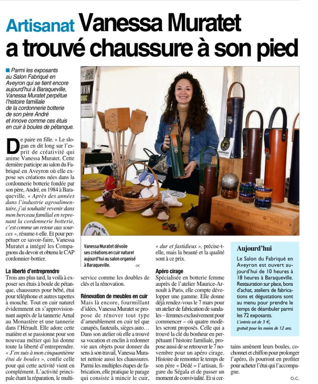 En 2023, je crée la Cordonnerie-Botterie Muratet – De Paire en Fille, où je perpétue les services traditionnels de réparation et de reproduction de clés, tout en diversifiant l’activité avec de nouvelles créations artisanales.